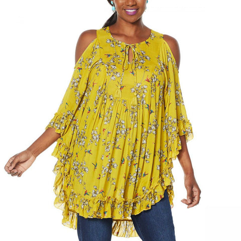 This pretty poncho offers two ways to wear: cold-shoulder style or sleeveless. With a swingy, ruffled hemline and presto changeo versatility, it's a fun addition to your wardrobe.