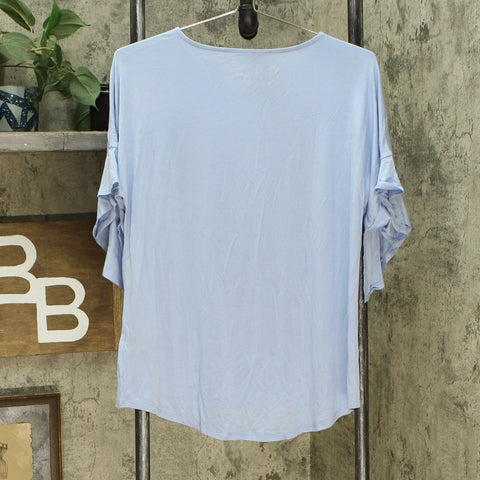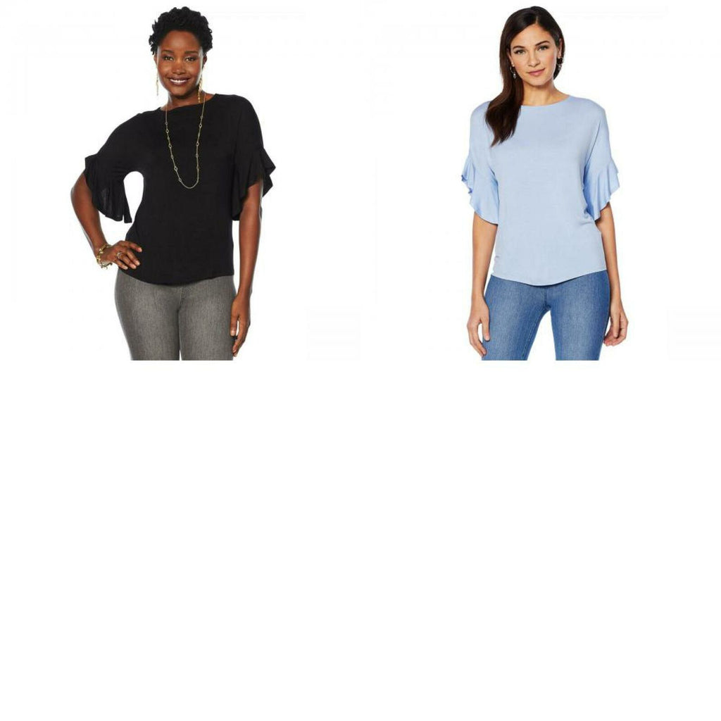 Top off the perfect casual weekend style with this ruffled beauty! Pair with jeans and a smile for a look that's understated, elegant and easy.