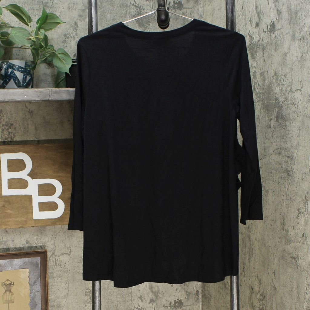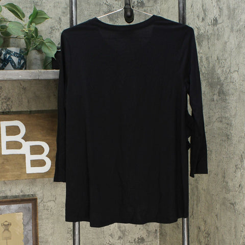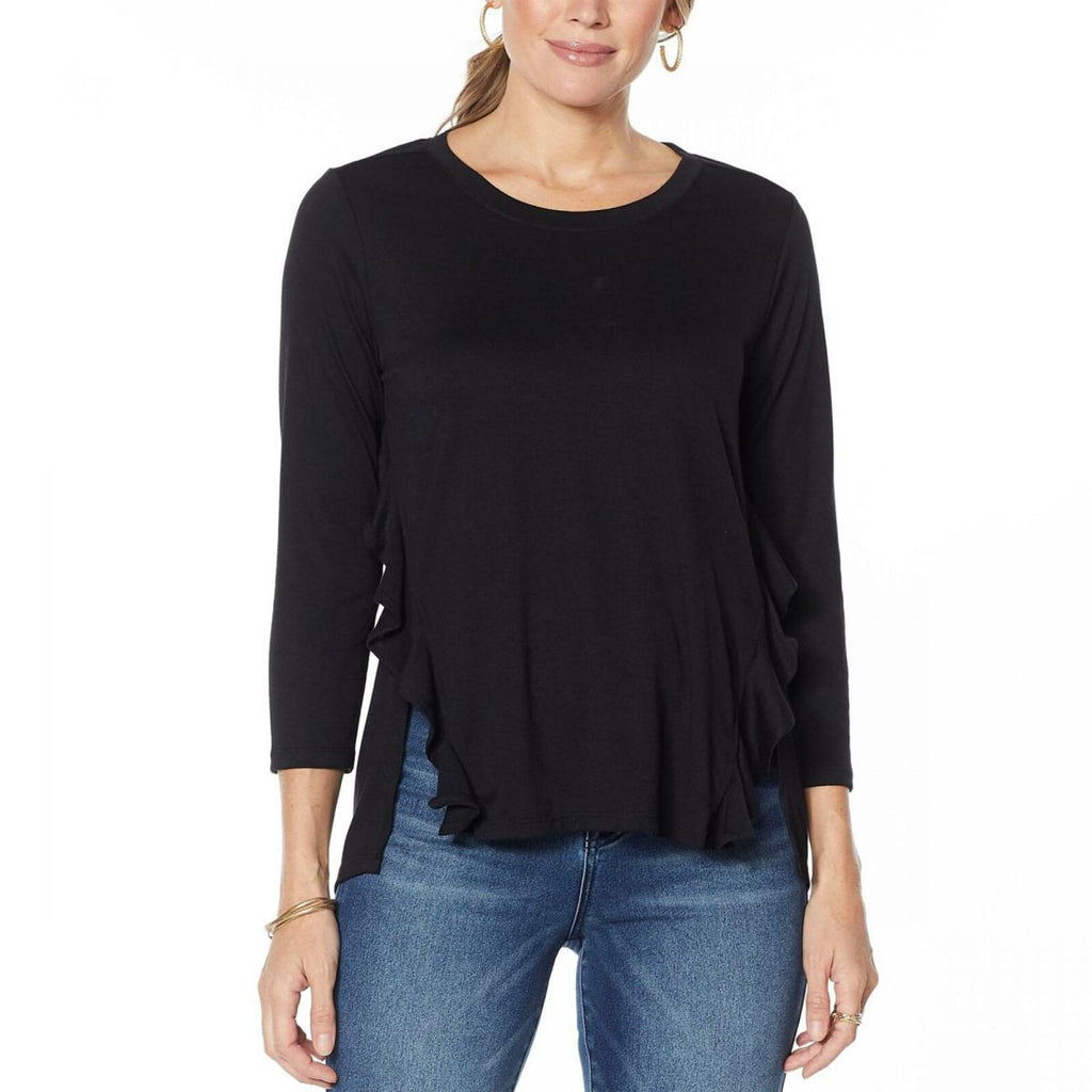 DG2 by Diane Gilman Women's Ruffled Knit Hi Low Hem Top Black Small