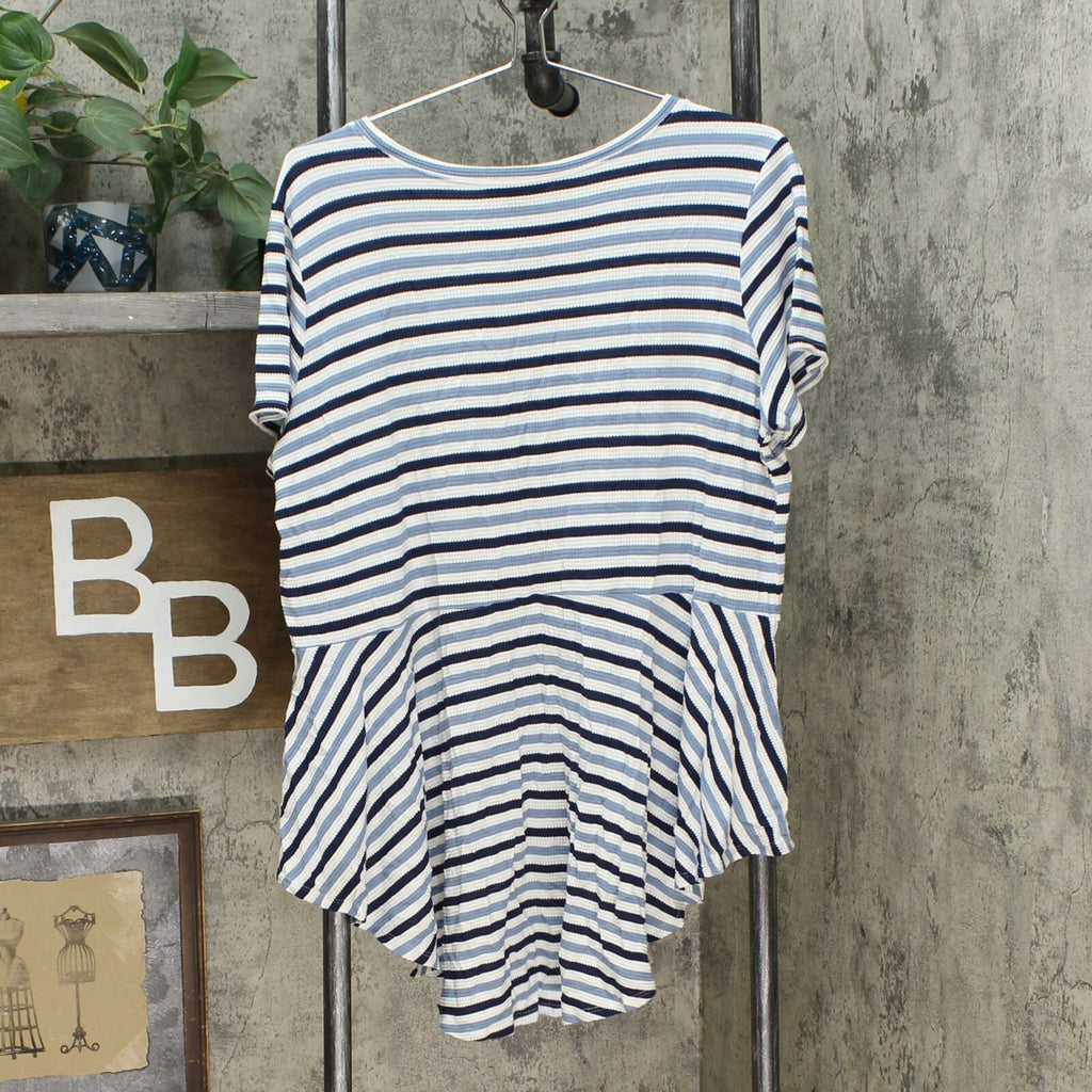DG2 by Diane Gilman Women's Striped Peplum Drama Top Chambray XL
