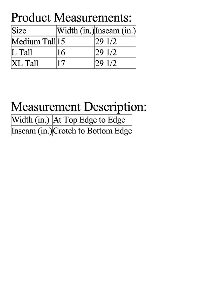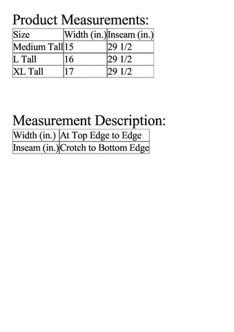 Inseam: Approx. 29.5"L (Tall)
