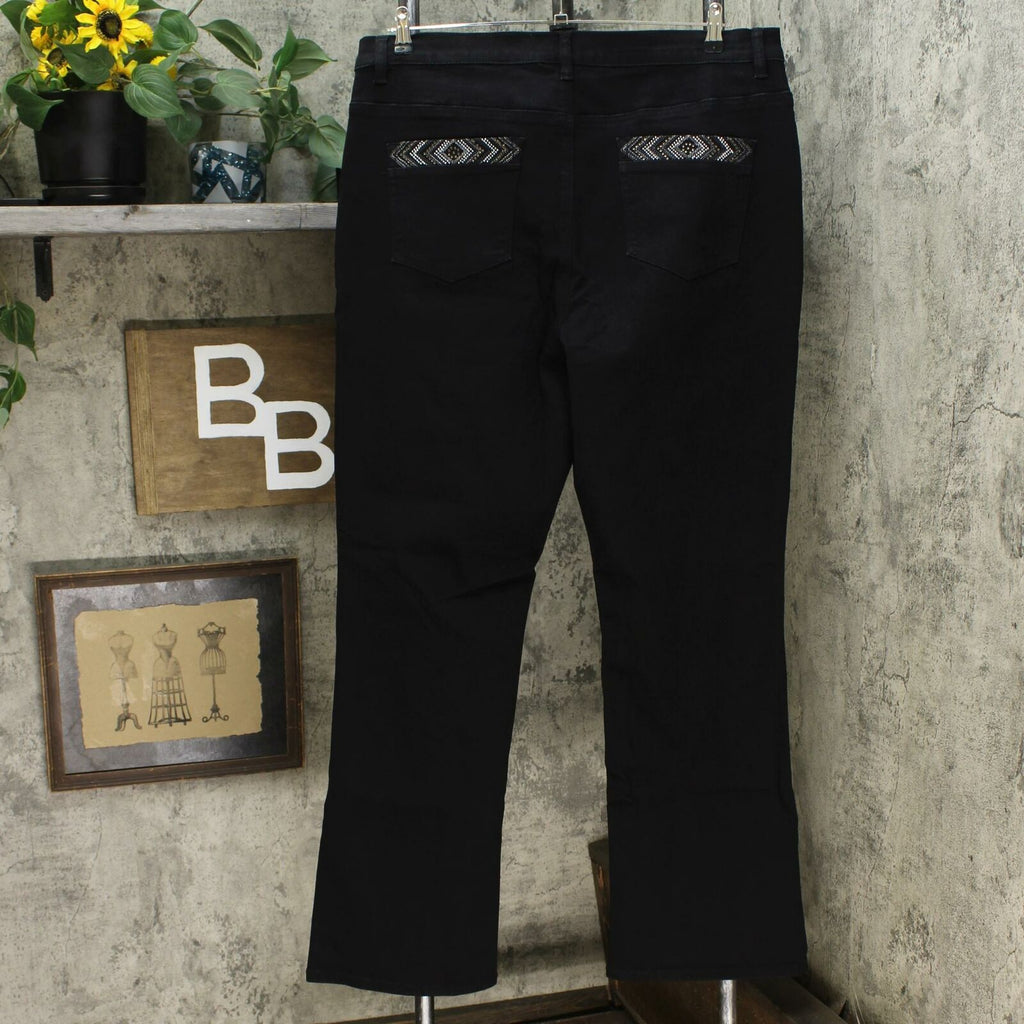 Trim/Embellishments: Embroidery, heatset stones on back pocket