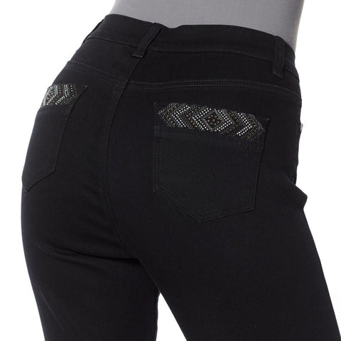 A touch of bling on the back pockets will bring some sparkle to your sashay. Made from virtual stretch denim, known for its softness and comfort factor.