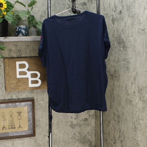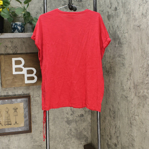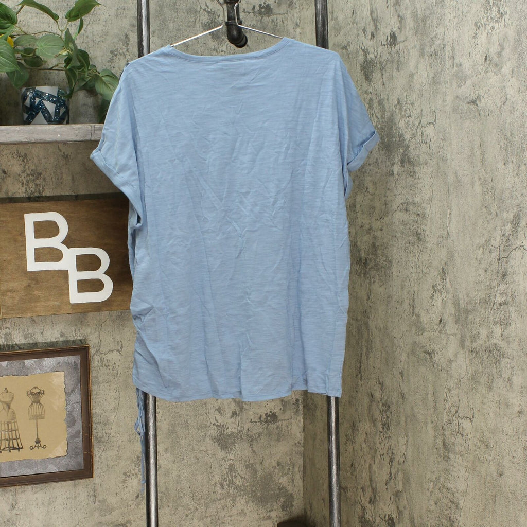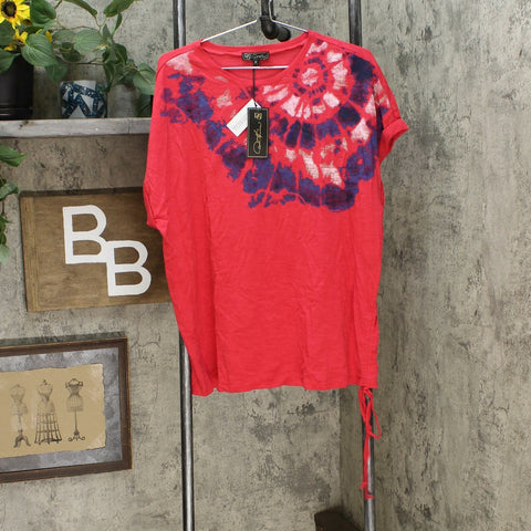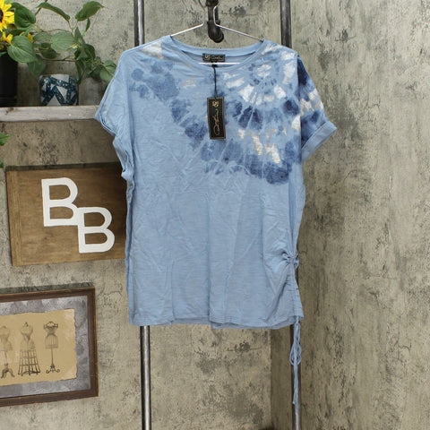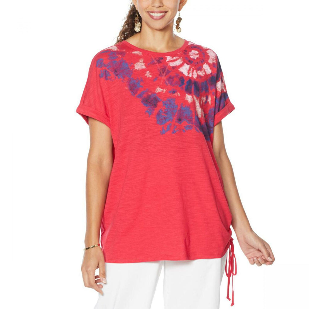 Tie dye has shed its hippie image and is making a play for your everyday wardrobe. The offset, tie dye design and adjustable drawstring detail give this cotton-blend tee a chic, summery feel.