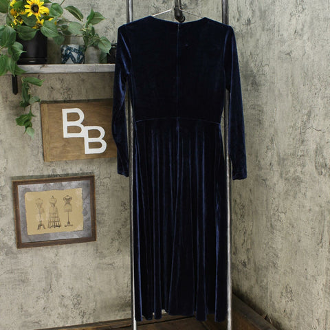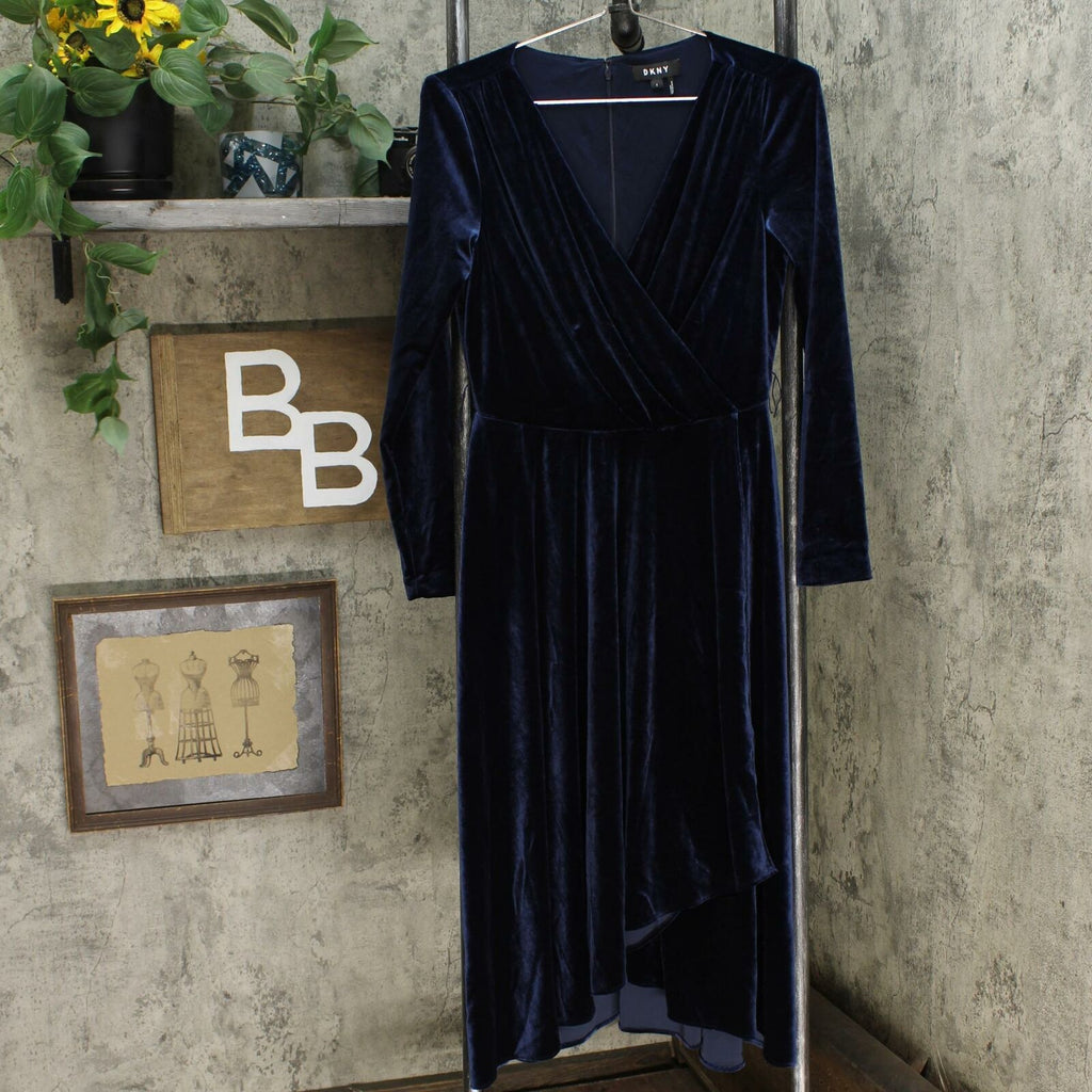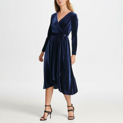 DKNY Women's Velvet V Neck Wrap Dress Midnight Blue 6