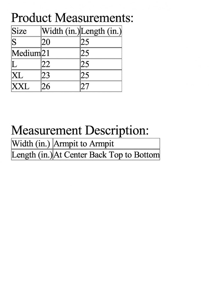 | Length (in.) | At Center Back Top to Bottom |
