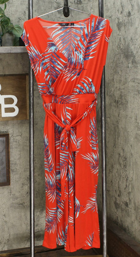 G by Giuliana Women's Belted Cropped Knit Jumpsuit Red Palm Petite Small