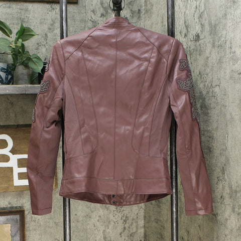 G by Giuliana Women's Faux Leather Embroidered Moto Jacket Dusty Purple 4