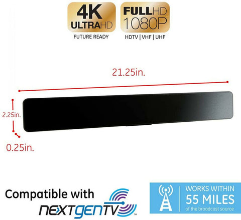 LONG RANGE ANTENNA This indoor HDTV antenna can reach up to 55 miles from the broadcast signal and be placed almost anywhere in your home As new channels are made available rescan your TV to allow the antenna to pull in the updated frequencies