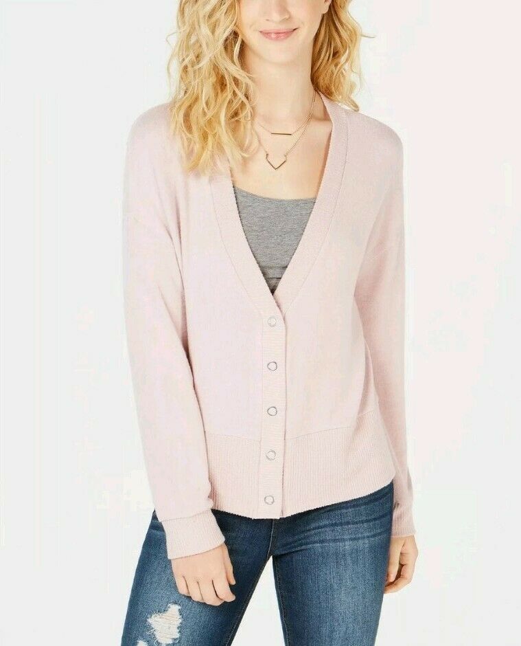 A soft and stretchy fabric and effortless fit make this snap-front cardigan from Hippie Rose a winning addition to your wardrobe.
