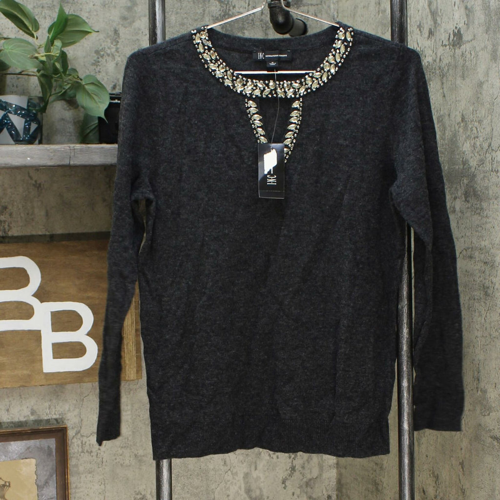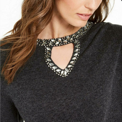 Brilliant embellishments bring a little sparkle to the keyhole neckline on this chic sweater from INC International Concepts.