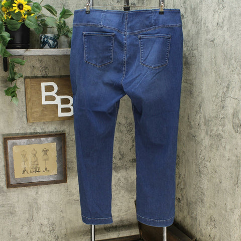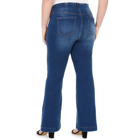 Easy to wear and styled to flatter, these pull-on plus-size jeans from INC International Concepts featured flared hems.