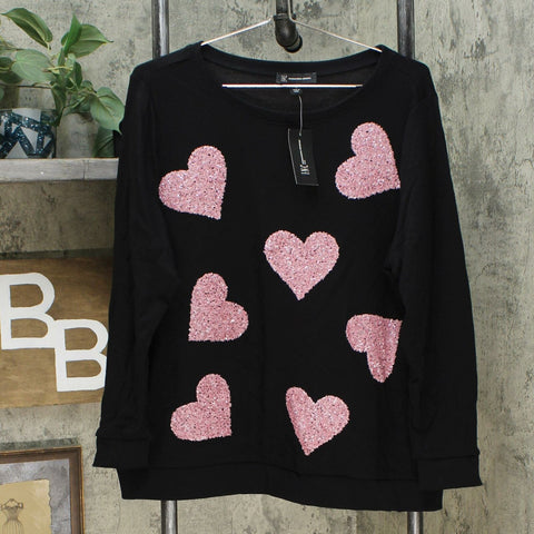 Sparkling sequinned hearts style the comfy coverage of INC International Concepts' plus size textured sweatshirt.