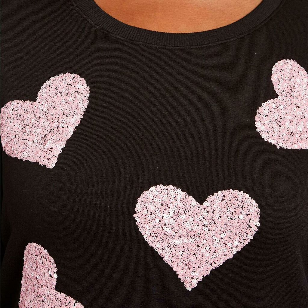 Sequinned hearts at front; ribbed neckline, cuffs and hem