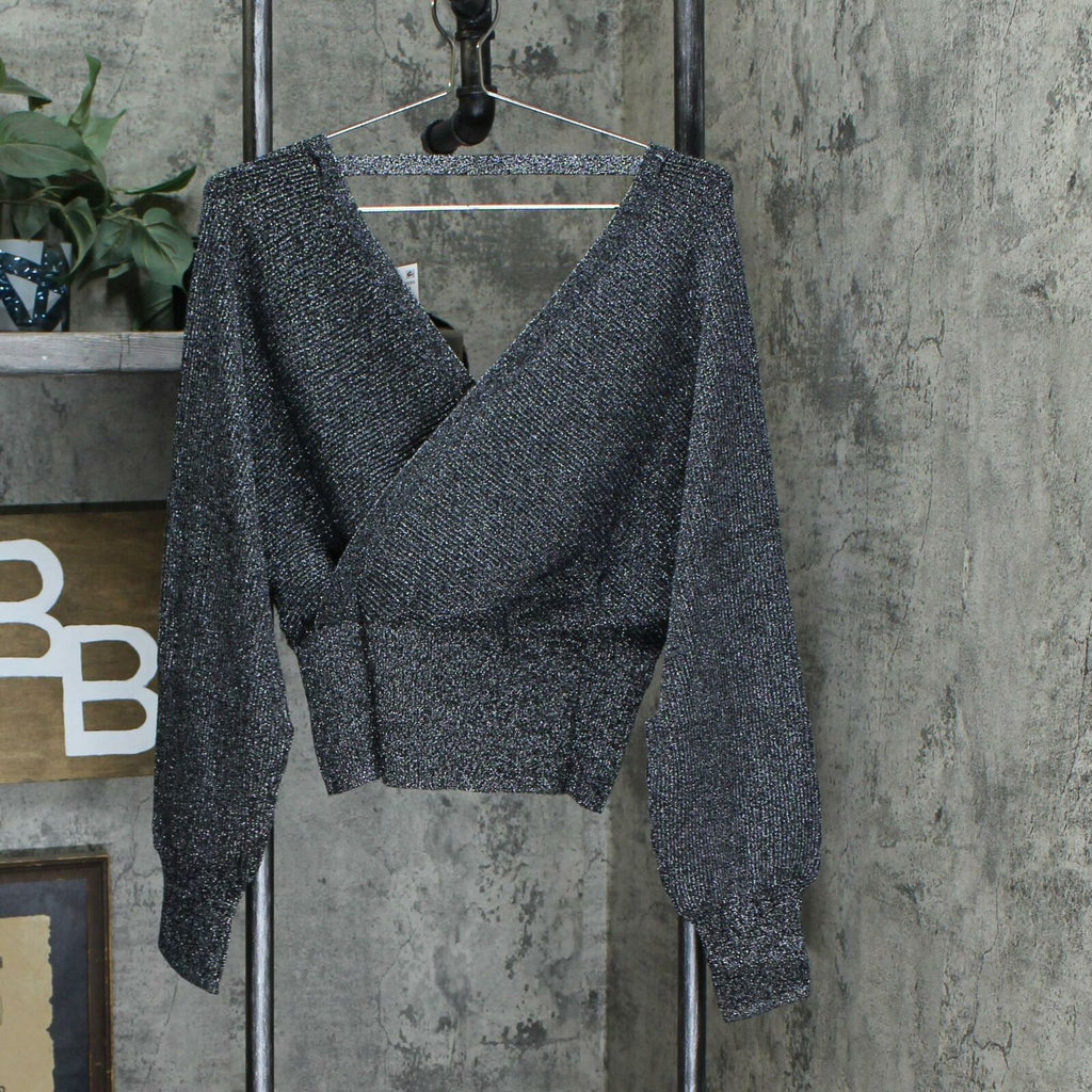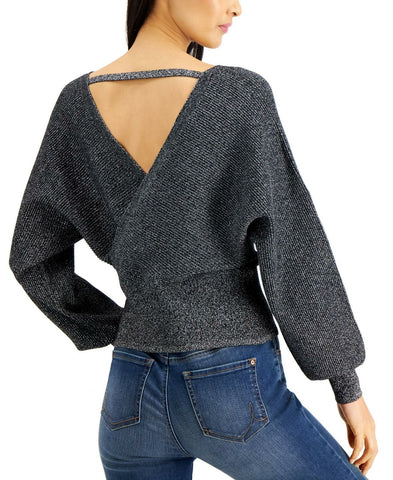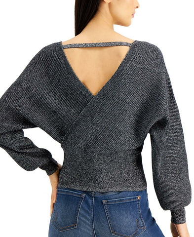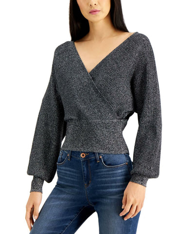 INC International Concepts Women's Surplice Metallic Sweater