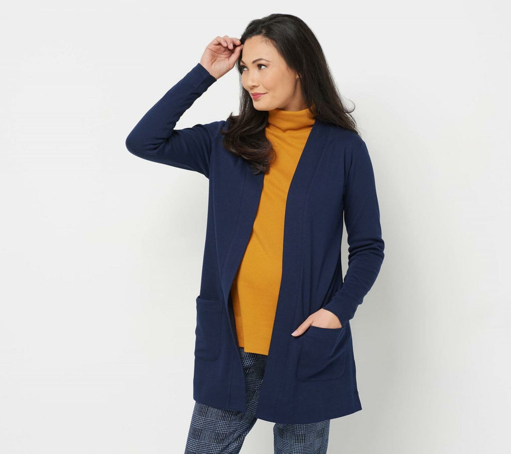 Isaac Mizrahi Live! Essentials Women's Open Front Cardigan Dark Navy Small