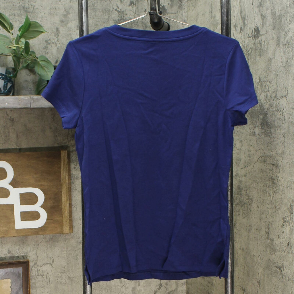 Features: V-neck, short sleeves, side slits