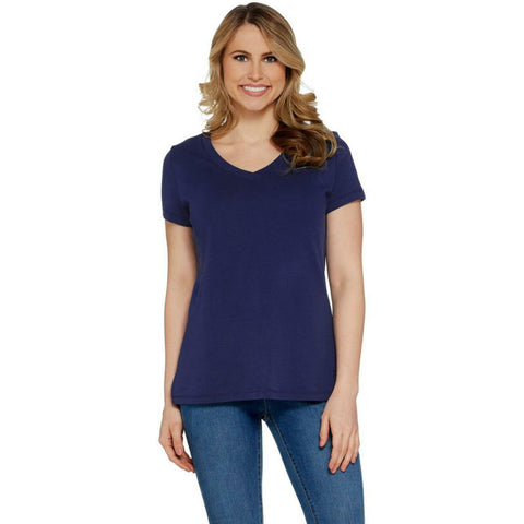An easygoing V-neck tee in pleasing pima cotton answers the call when every morning minute counts. From Isaac Mizrahi Live!(TM).