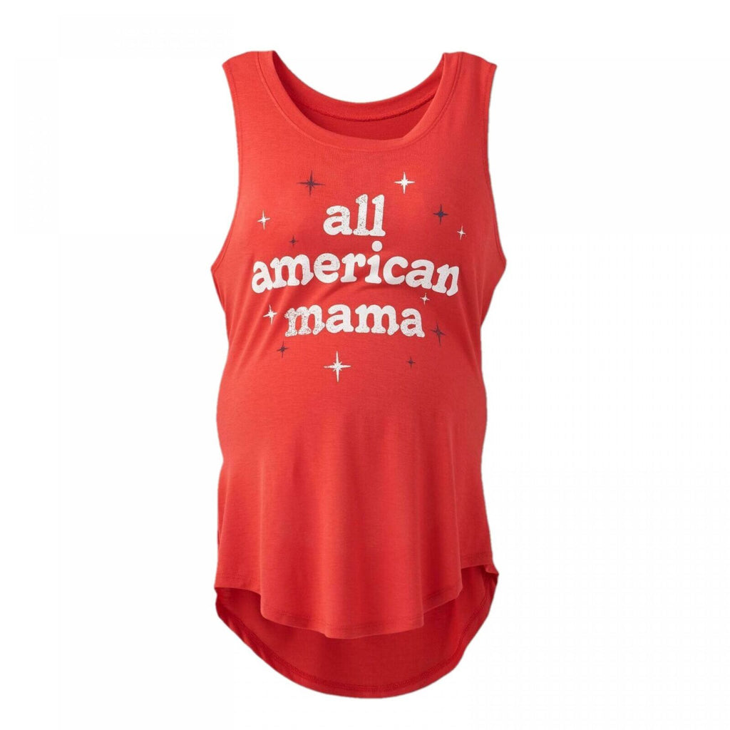 Show your proud mama stars and stripes with this scoop-neck maternity tank that will keep you cute, cool, and festive all summer long. The loose fit drapes nicely over a growing belly and a U-shaped hem gives you extra coverage just where you want it. Wear it with shorts on hot days, and layer it with a sweater when the nights cool off.