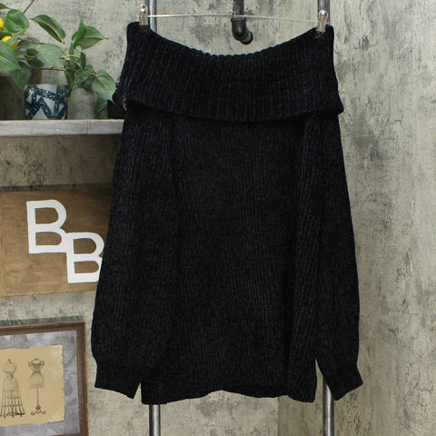 Turn heads without even trying in this chenille sweater featuring a Marilyn collar. Wear it pulled off shoulder to expose as much skin as you like.