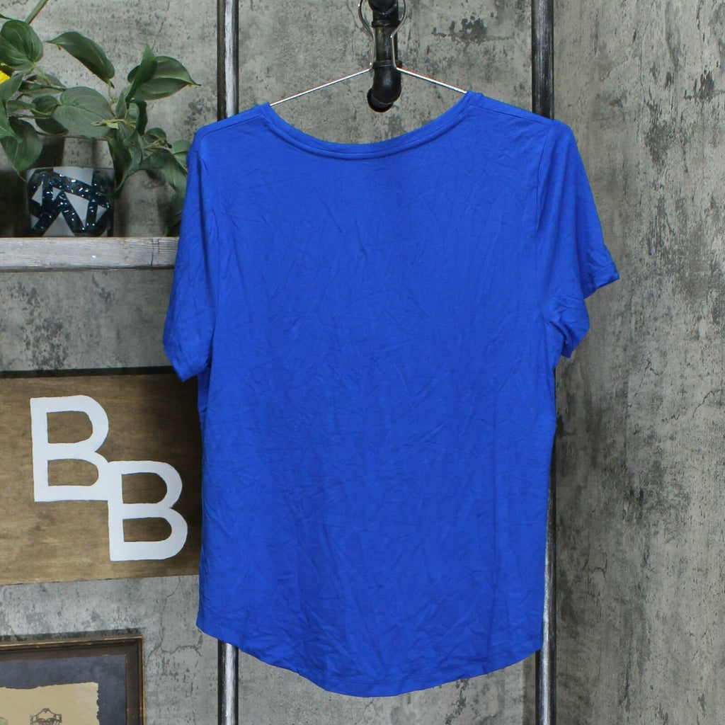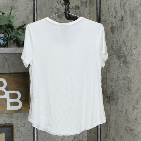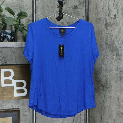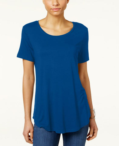 JM Collection presents a wardrobe essential with this petite scoop-neck top in a versatile solid hue, finished with a rounded shirttail hem.