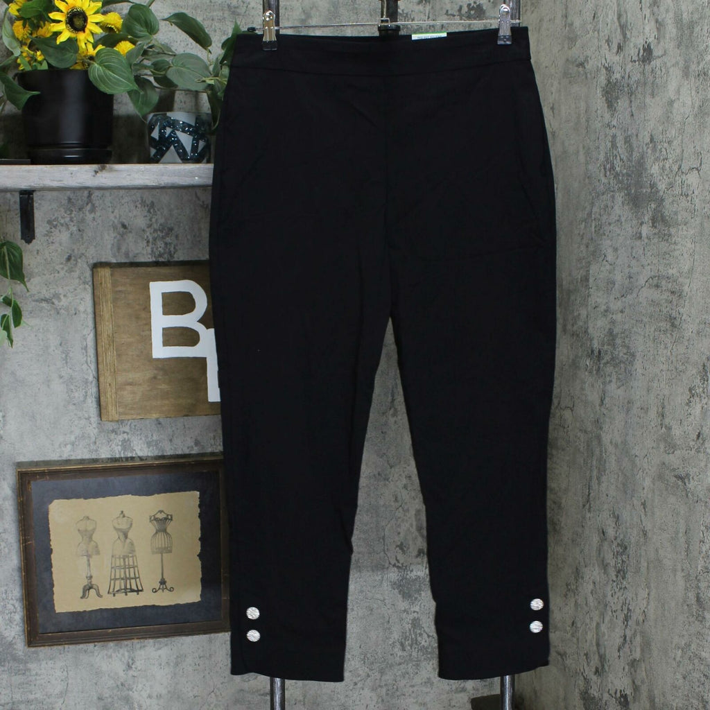 Glittering buttons bring a stylish difference to these JM Collection pants, comfy pull-ons with an ankle crop for current appeal.