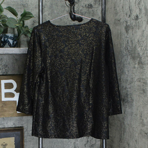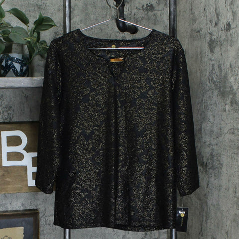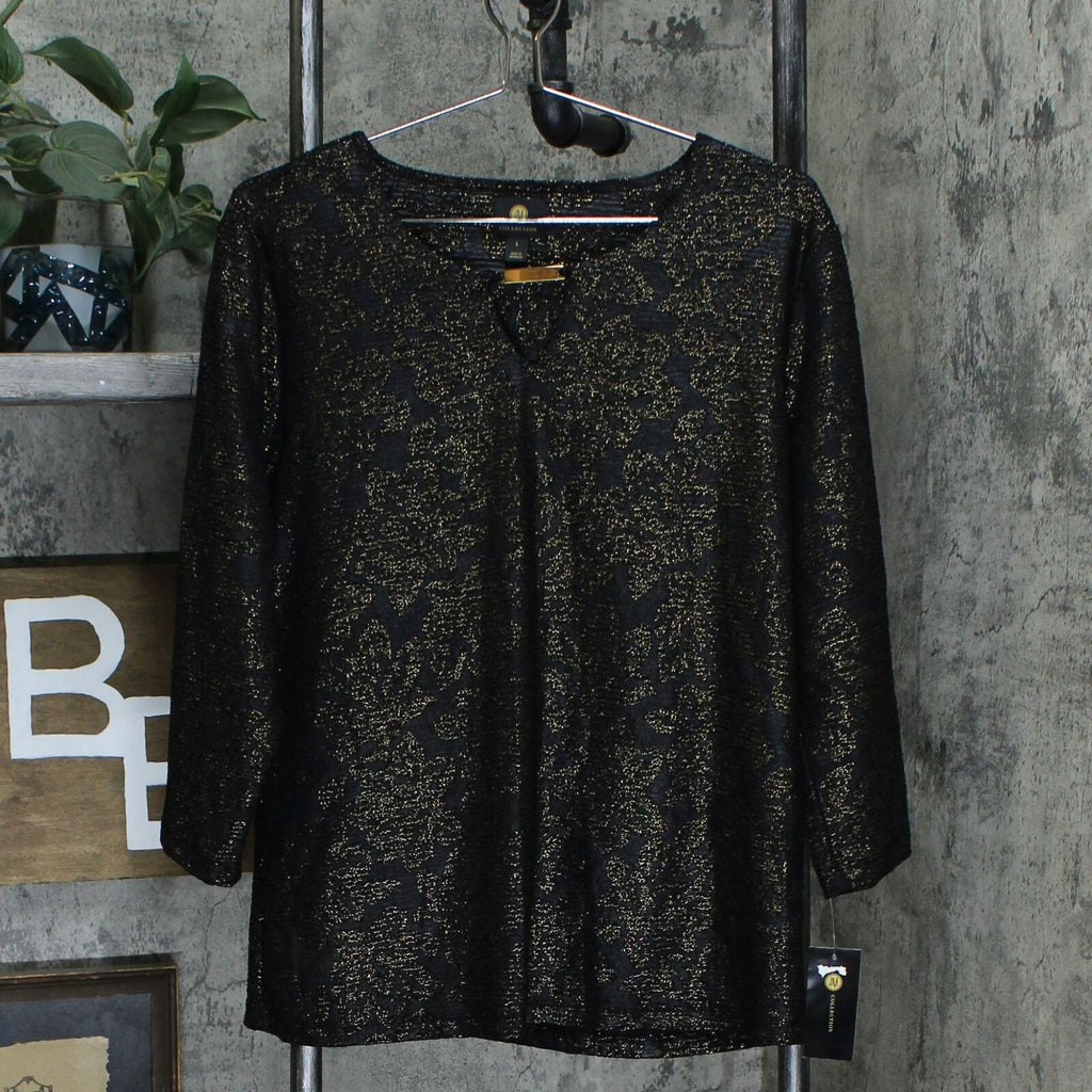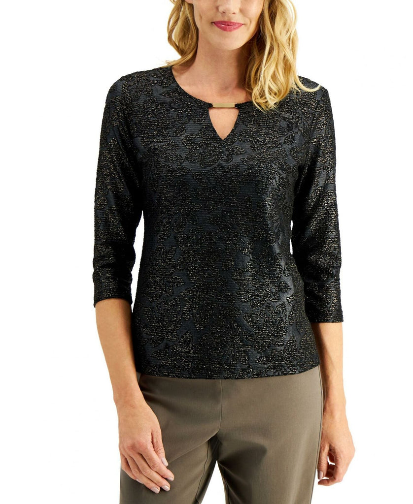 A versatile textured color with pizzazz, this JM Collection top features a jacquard knit with metallic accents.