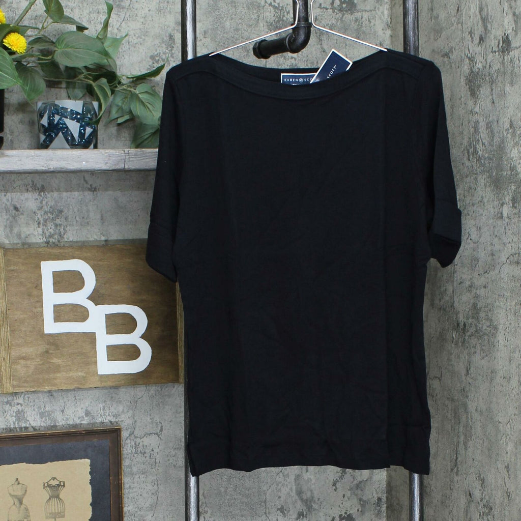 Karen Scott's cotton top with elbow-length sleeves and boat neckline is a versatile and comfy piece you'll always keep in rotation.