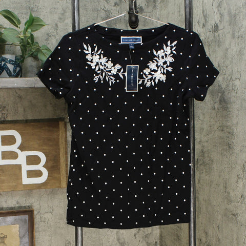 Layer on the detail with Karen Scott's boat-neck cotton top, featuring both printed and embroidered patterns.