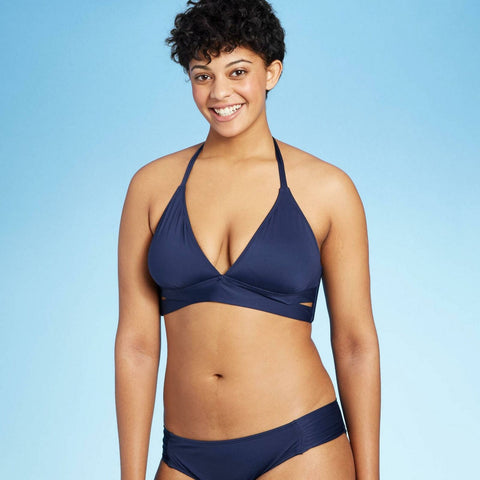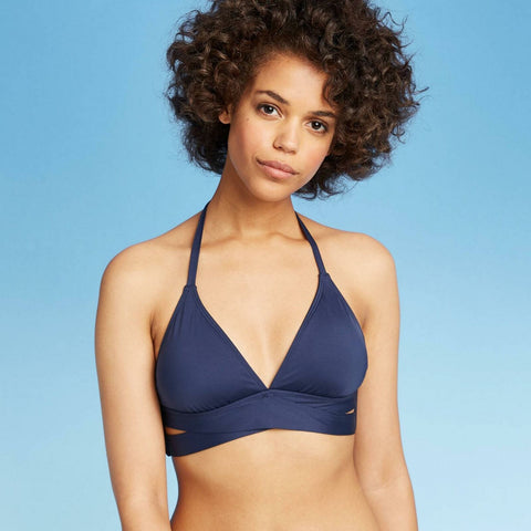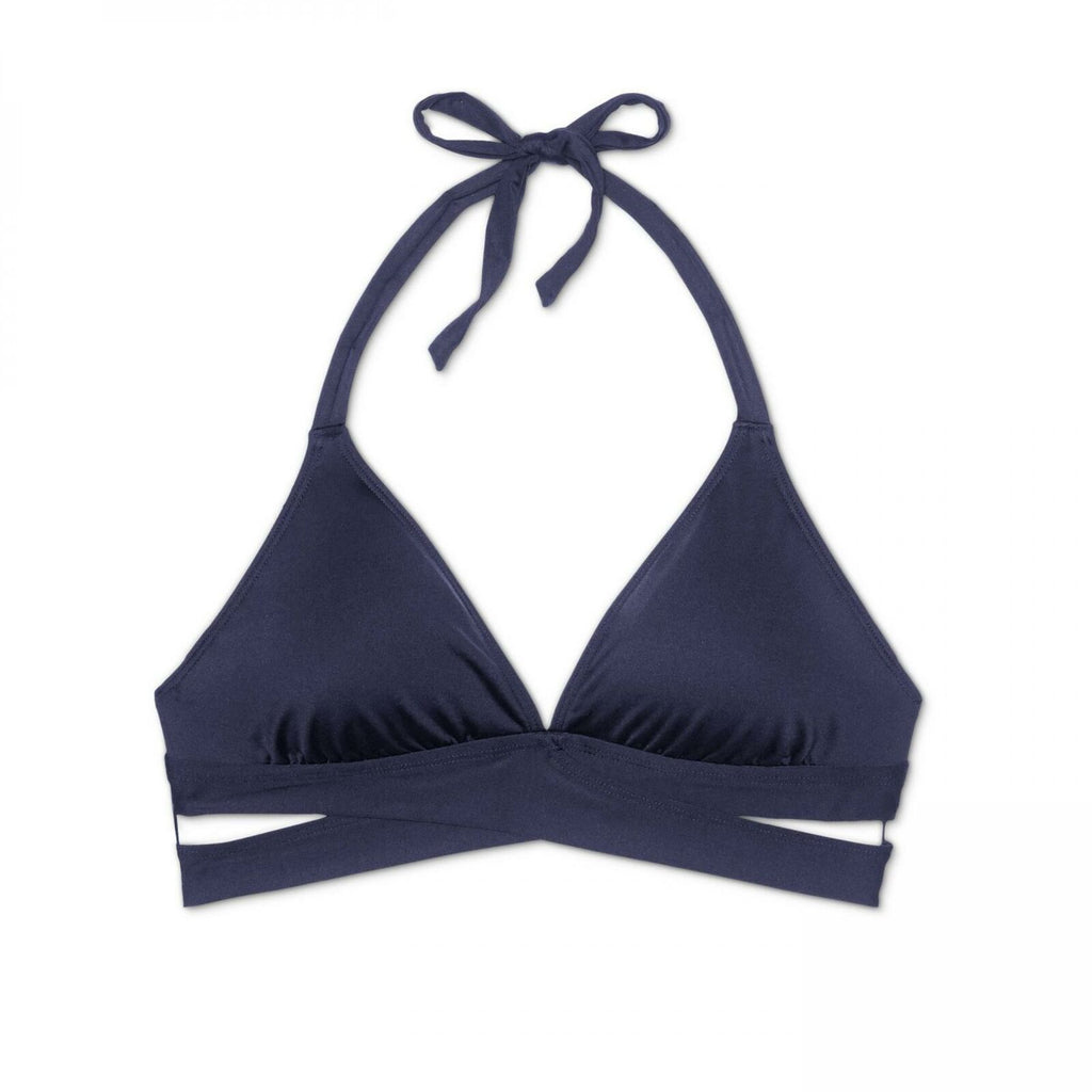 Update your swimwear looks by pairing your favorite swim bottoms with the easy style of the Faux-Wrap Halter Bikini Top from Kona Sol. The faux-wrap style has small cut-out accents on the sides for a subtle pop of style, while the deep V-neckline creates a classic beach look. Removable cups let you customize your coverage and shaping, while the back and neck ties help you get the perfect fit with each wear.