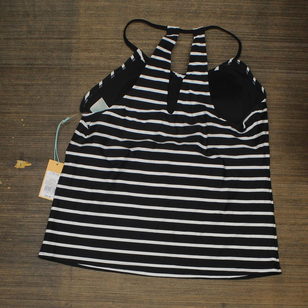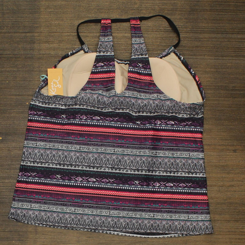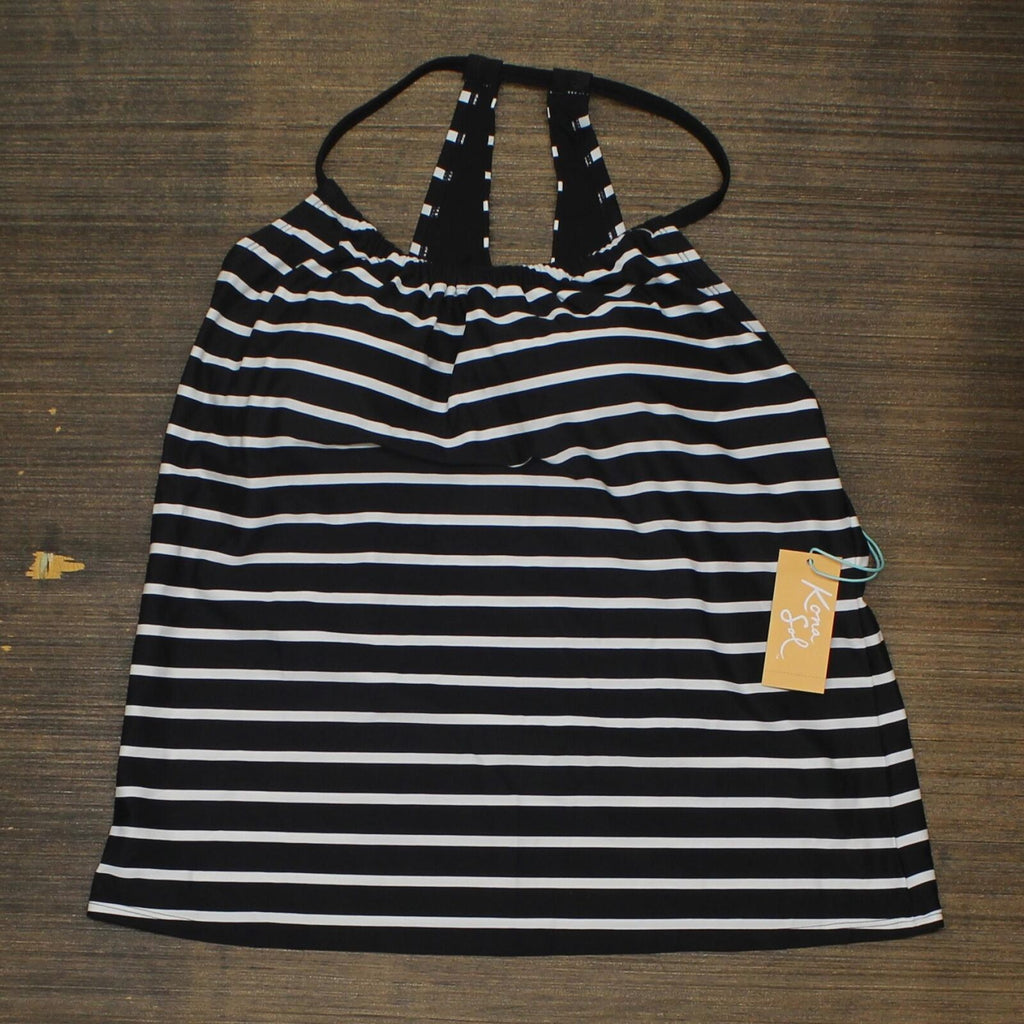 A perfect compromise between a one-piece and a bikini, the Racerback High Neck Tankini Top from Kona Sol is a swimwear piece you'll love slipping on again and again. Full torso coverage makes this tankini a great pick when you want a two-piece option but don't want to show as much skin as with a bikini, while a looser fit feels a bit less restrictive than a one-piece so you can take on your waterside outings feeling great. The tankini has a high neckline and sewn-in cups for added bust coverage, while the racerback creates a large cutout to add some extra dimension.