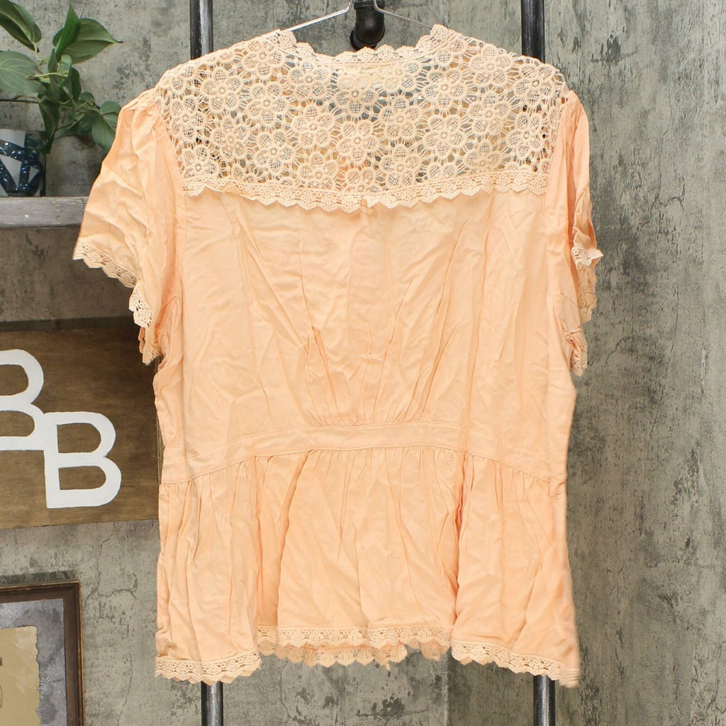 NWT LaBellum By Hillary Scott Womens Lace-Crochet Button Up Top. 638591-Plus 1X