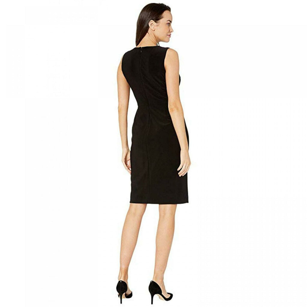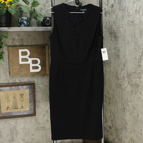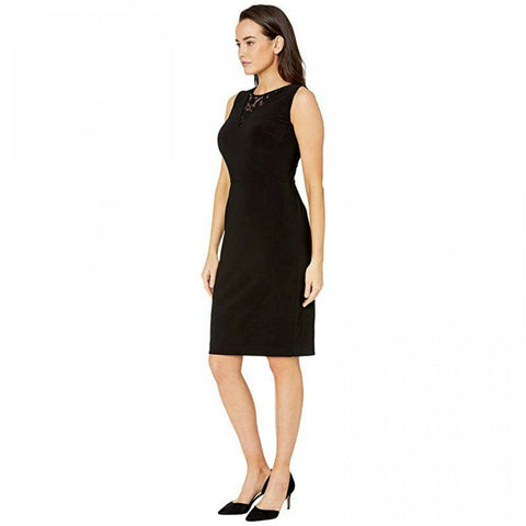 You'll be picture-perfect in the LAUREN Ralph Lauren dress featuring a sheath silhouette and a solid jersey-matte fabrication with a lace panel at front of neck.