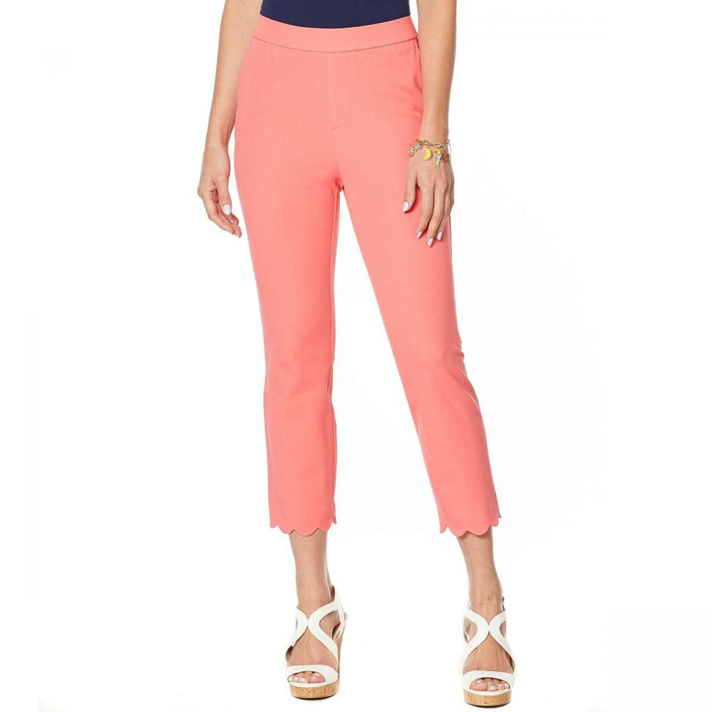 Lemon Way Women's Flawless Twill Scallop Hem Crop Pants Coral 14