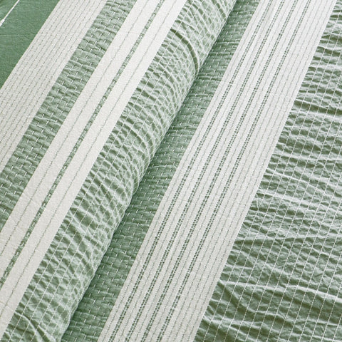 The Pickford Duvet Cover Set by Levtex Home is hip and contemporary. Offered in Grey, taupe and off-white, this design will immediately transform your bedroom. Made with a durable cotton, this duvet cover set features a woven jacquard in Grey, taupe and off-white with detailed tribal patterning and ruching. It has a tribal woven stripe in Grey, taupe and off-white on the front and a solid cream 100% cotton on the reverse. It closes with easy to use, durable buttons. The Pickford Duvet Cover Set is machine washable and includes the duvet (90 x 94in.) and two standard pillow cases (26 x 20in.) Enjoy this for years to come!