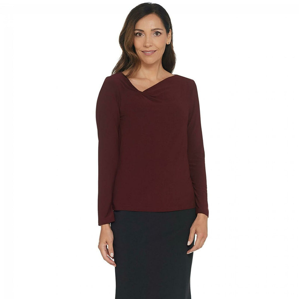 Channel your favorite classic style icon in this asymmetrical neckline top, a minimalist look with just enough flair to make it undeniably vogue.