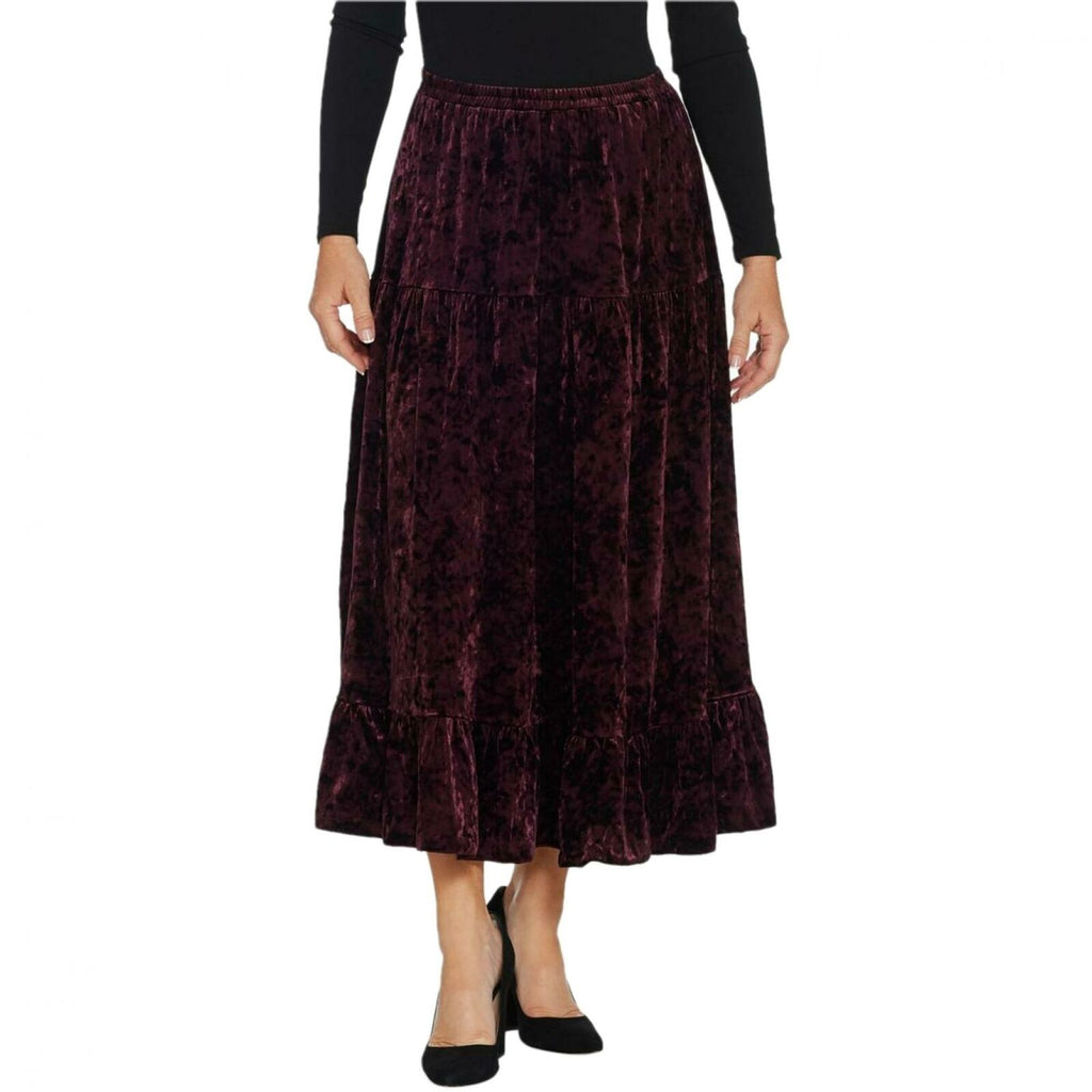 From dressy events for weekend get-togethers with friends, this crushed velvet skirt is the perfect foundation piece for a wide variety of ensembles.