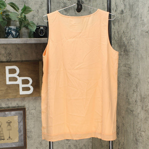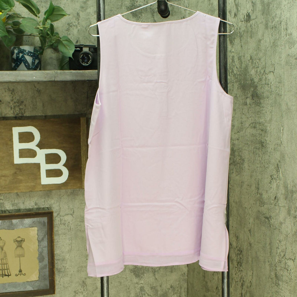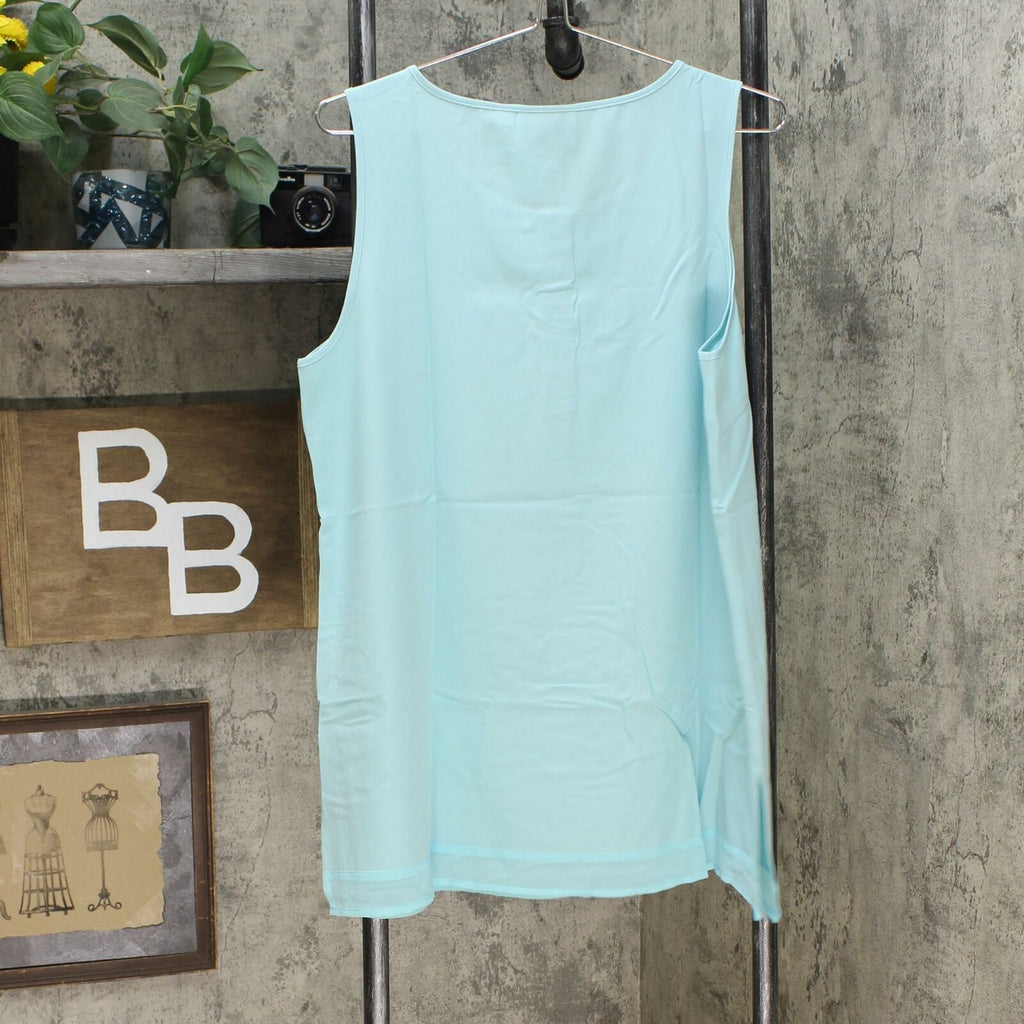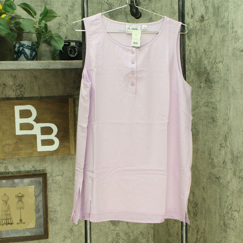 Features: pullover, sleeveless, solid, chiffon border, henley style neckline with buttons