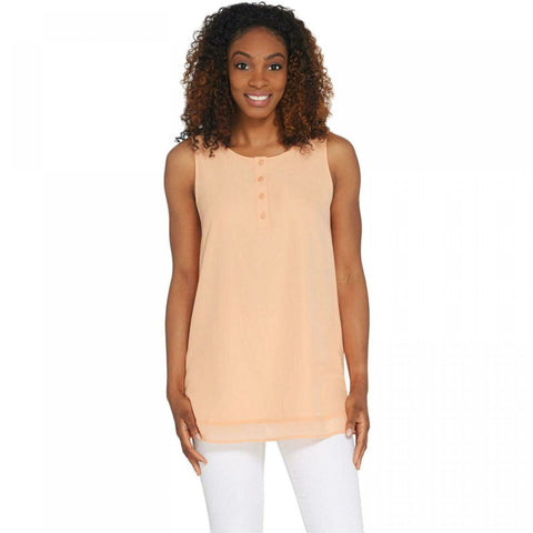 Even when layered, this sleeveless swing top shows off its henley-style neckline and chiffon border--making a pretty, yet polished foundation. From Linea by Louis Dell'Olio.