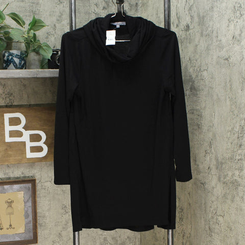 Features: long sleeves, cowl neckline, hi-low hem with front-facing side slits