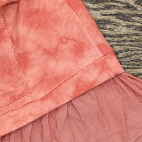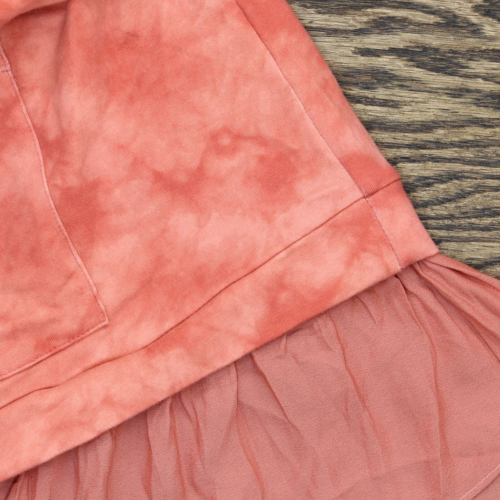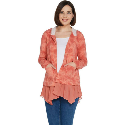 Trimmed with a ruffled crepe hem, this French terry open-front hoodie is quickly transformed from casual layer to effortless feminine fashion statement.