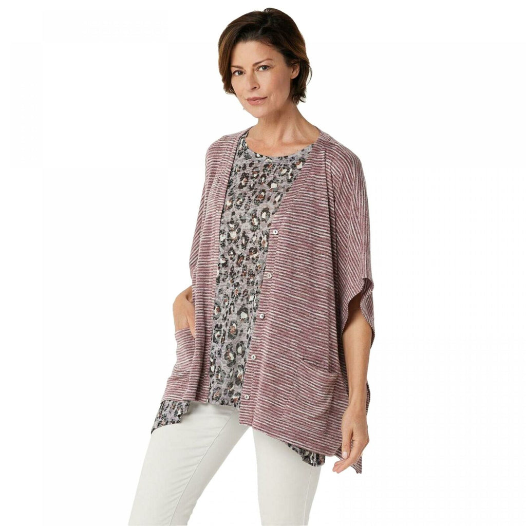 Get an effortless layered look with this cozy sweater knit shrug and tank--both printed in complementary designs. From LOGO by Lori Goldstein.