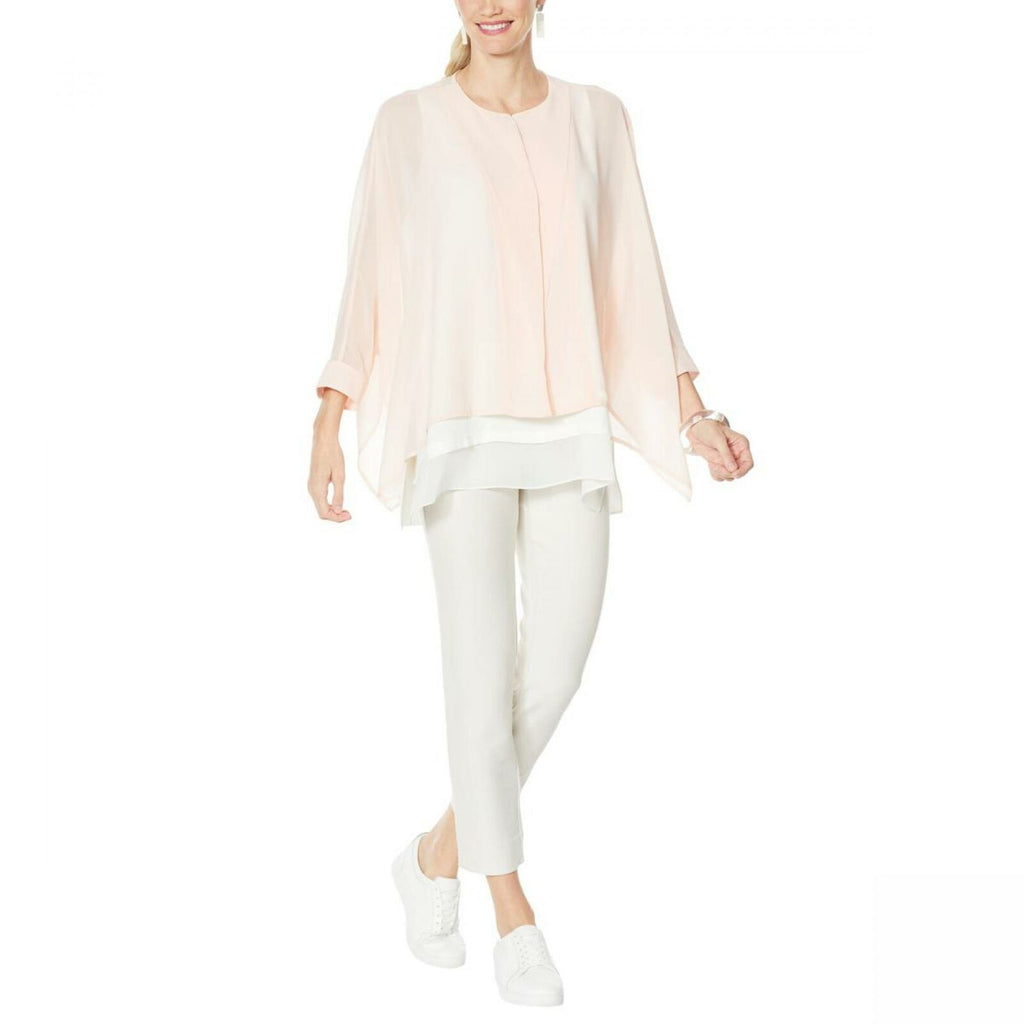 For a voluminous silhouette that complements every body type, this unstructured chiffon shirt is ideal. Wear this unique garment over a WynneLayers tank and narrow-leg pant, or top off a sleeveless dress for luxurious layers.