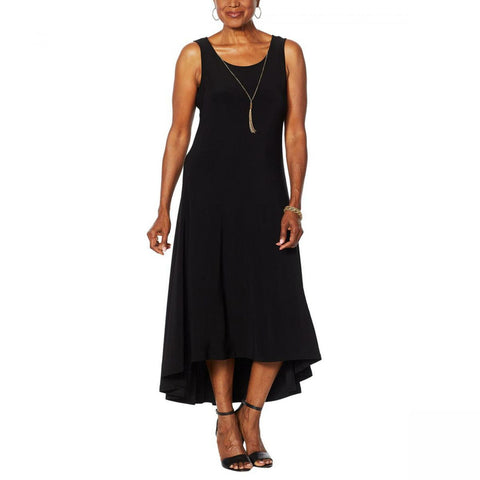 Sometimes, it's the little things. You'll love this flattering hi-low dress with detachable necklace that gives you that extra sparkle. Wear it well.
