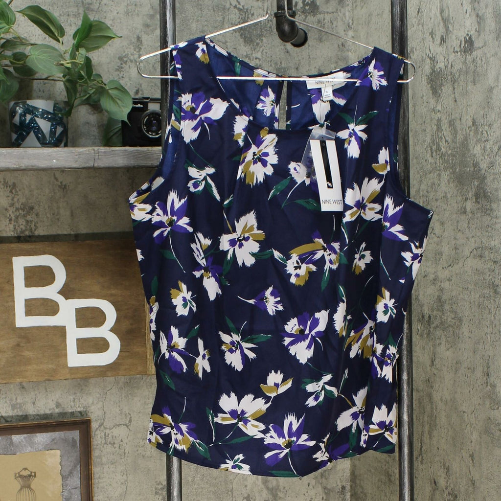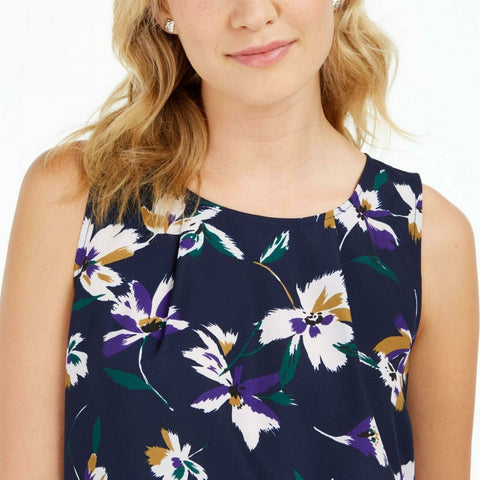 Perfect for layering a suited look with personality, Nine West's floral-print top adds structure and style with neat pleats.