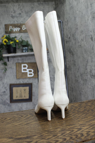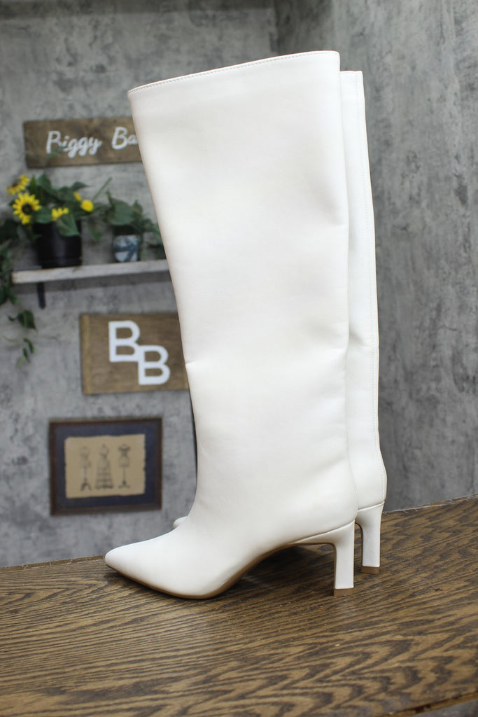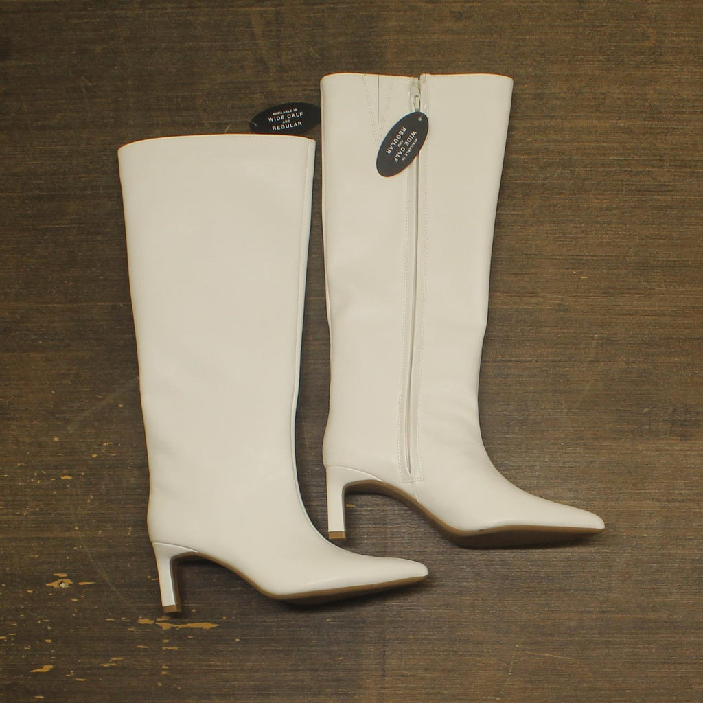 Featuring a stovepipe shaft over kitten heels, the On 34th Rachelle boots dress up or down with cool, modern appeal. Features Kitten heel: 2-1/2" Shaft height: 15"; Circumference: 14"; measured on a size 6 Pointed toe Functional inside zipper closure Our brand was designed for, and with women like you. Made for your body, your style, and your truth. As your wardrobe's best friend, these mix-and-match pieces work with everything in your closet. Exclusive Upper: 100% manmade; lining: 100% fabric; sole: 100% rubber Imported