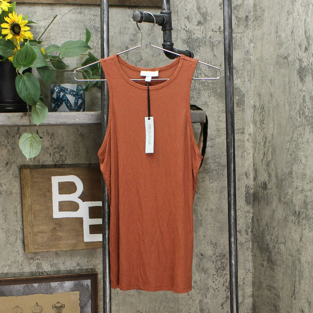 Rib-knit tank top made from a lightweight fabric for comfort. Cut in a fitted silhouette that falls below the hip, and a round neckline completes the look.