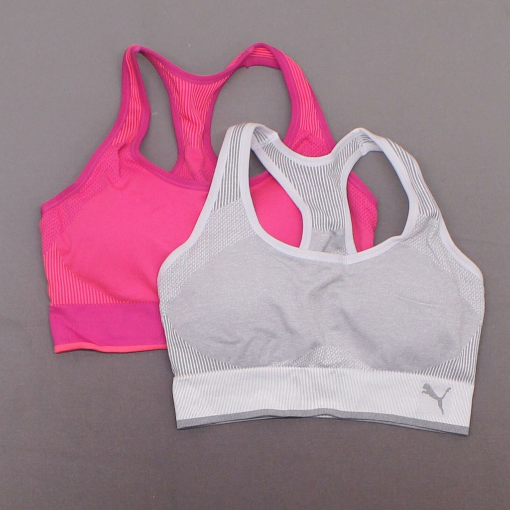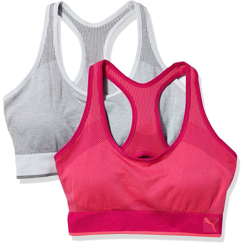 Puma Women's 2 Pack Active Performance Sports Bras Pink / Gray Medium