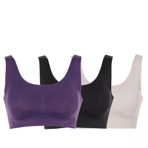 Free yourself from visible lines, uncomfortable bunching and scratchy back closures. Featuring an invisible-edge, seamless pullover design in a soft knit-blend, this bra is designed to be a go-to favorite.