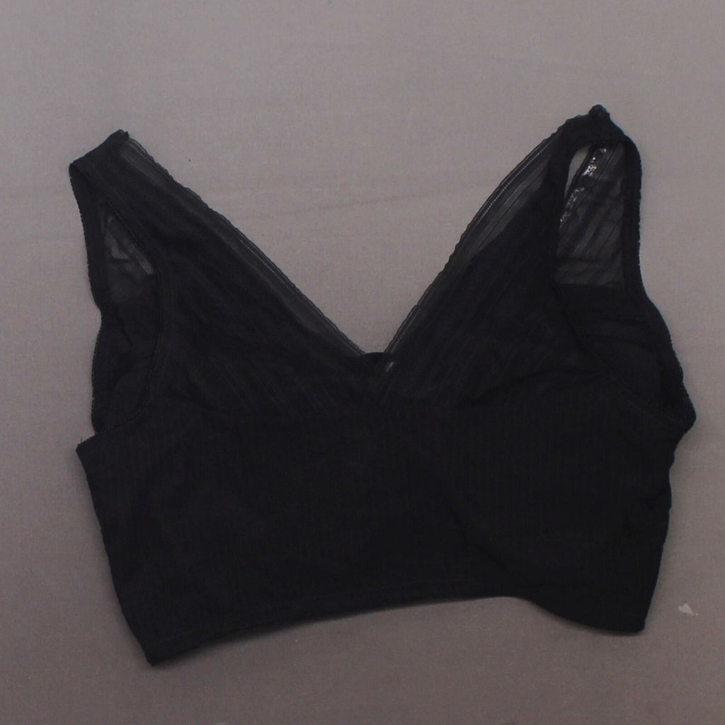 Rhonda Shear Women's Striped Mesh Leisure Bra With Removable Pads Black XL